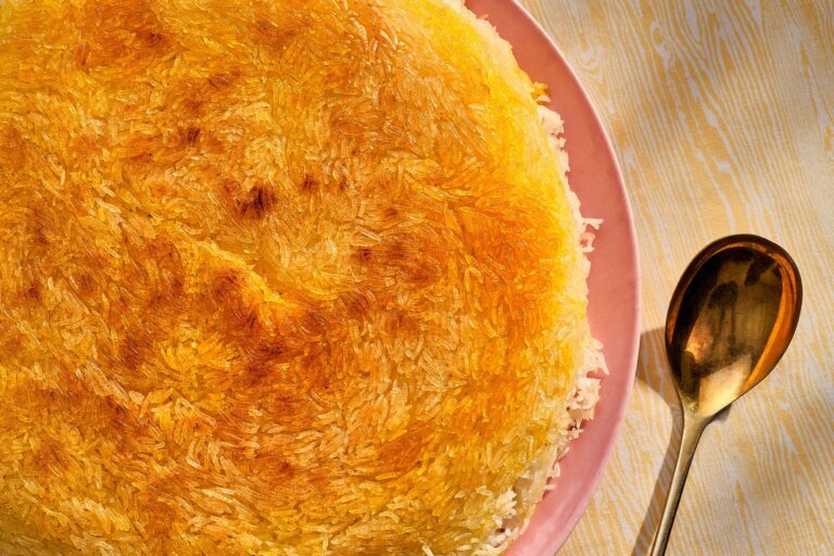 История рецепта и описание Чело ба тахдиг — традиционное блюдо персидской кухни, где рис готовится в два этапа: сначала отваривается, а затем томится для образования хрустящей золотистой корочки тахдиг на дне кастрюли. Ароматный шафрановый рис получается рассыпчатым, с нежным масляным…