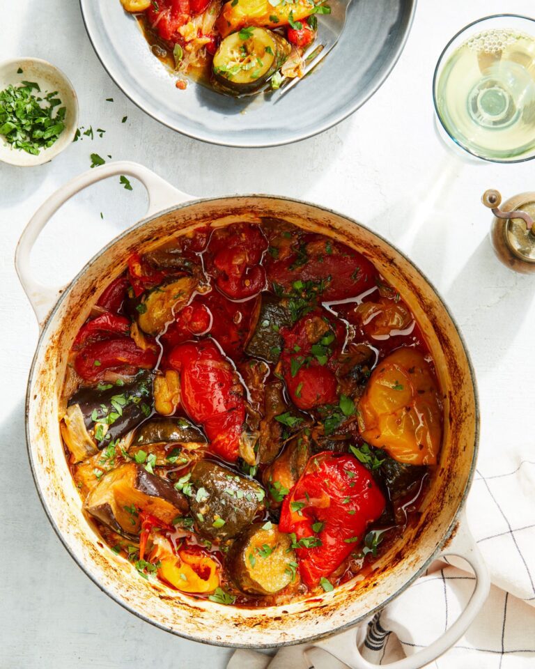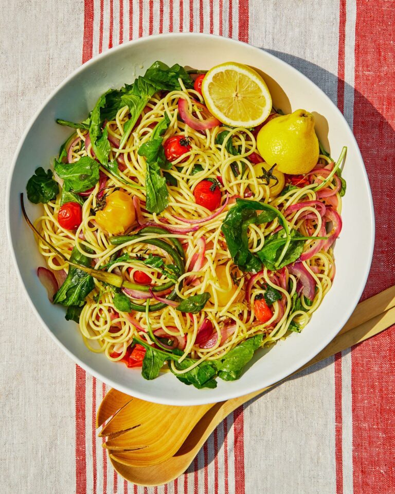 История рецепта и описание Этот рецепт итальянской пасты с побегами чеснока и вишнёвыми помидорами происходит из летней кухни, где используются сезонные овощи для простых и свежих блюд. Побеги чеснока добавляют мягкий чесночный аромат без остроты, а запекание помидоров и лука…