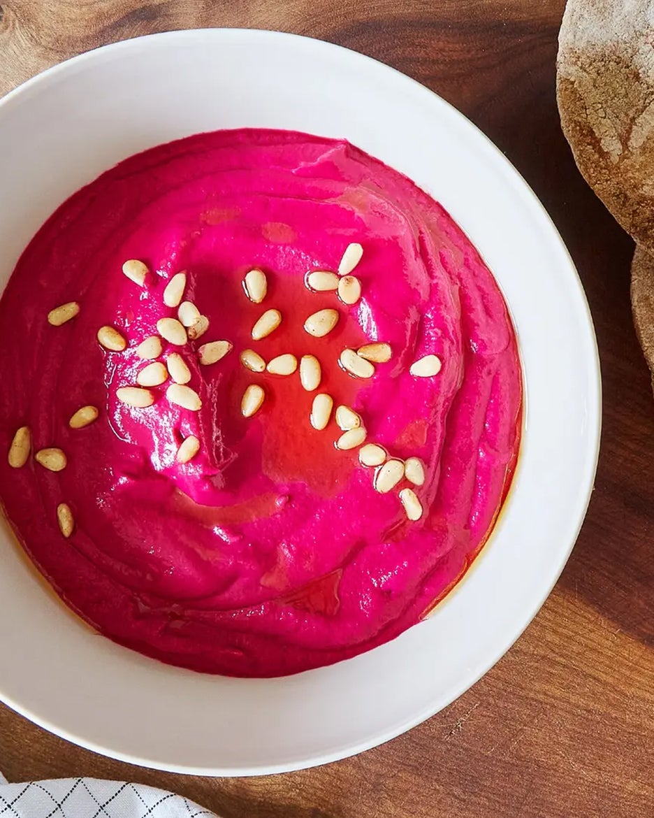 Этот яркий красный дип из свёклы с тахини — традиционное египетское блюдо из североафриканской кухни, созданное египетско-американским автором кулинарных книг Сюзанной Зейди. Ореховый вкус тахини сочетается с сладостью варёной свёклы, лимонной кислинкой и чесночным ароматом, создавая кремовую текстуру с насыщенным цветом. Подавайте как закуску с плоским хлебом или питой, идеально для лёгкого обеда или ужина в стиле ближневосточной кухни.