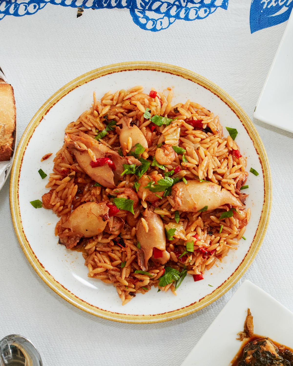 Критарато (Орзо с томатами, кальмарами и креветками)
