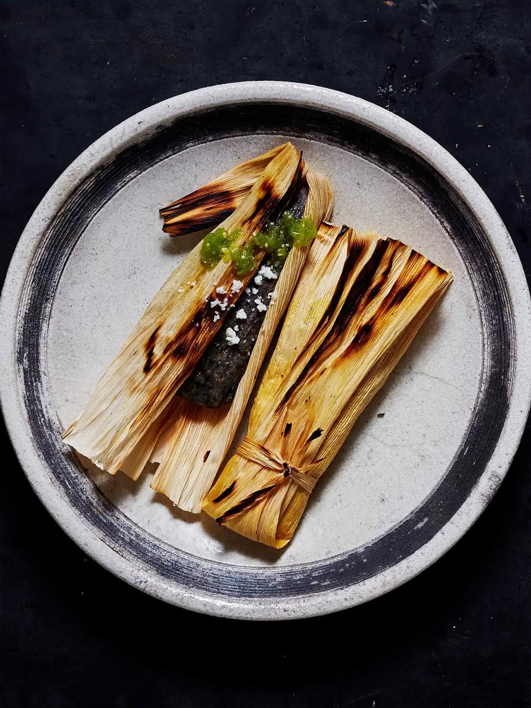Тамале — традиционное мексиканское блюдо, происходящее из доколумбовых времён, где кукурузное тесто оборачивается листьями и готовится на пару. Этот рецепт кукурузных тамале подчёркивает нежную, воздушную текстуру теста благодаря обильному жиру, с лёгкой сладостью от свежей кукурузы. Подавайте их горячими, разворачивая из листьев и поливая острой томатильо-сальсой, которая добавляет свежую кислинку и уравновешивает насыщенность. Тамале идеальны как основное блюдо или закуска, а остатки можно разогреть на гриле для копчёного аромата.