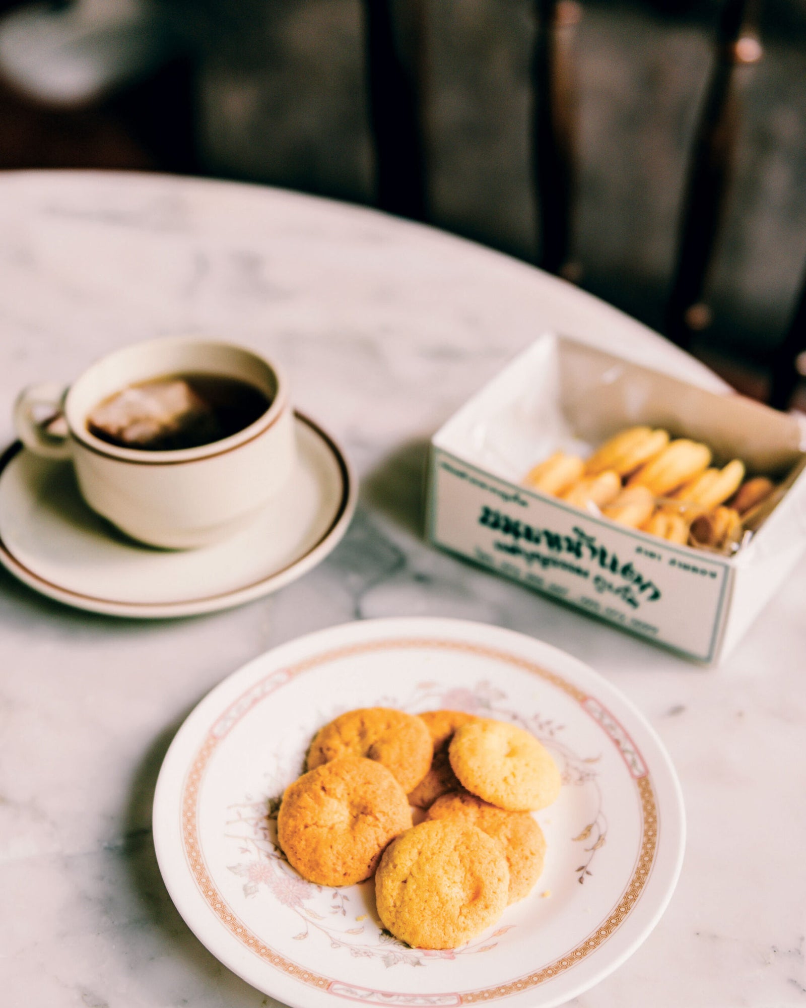 Тайские сахарные печенья происходят из провинции Пхукет в Таиланде, где кухня сильно повлияна китайскими иммигрантами, принесшими традиции выпечки на основе пшеничной муки. Эти хрустящие печенья с лёгким вкусом, напоминающим фортункуки, имеют характерную «трещиноватую» верхушку и золотистый оттенок. Их подают как лёгкий десерт к кофе или чаю, идеально для перекуса.
