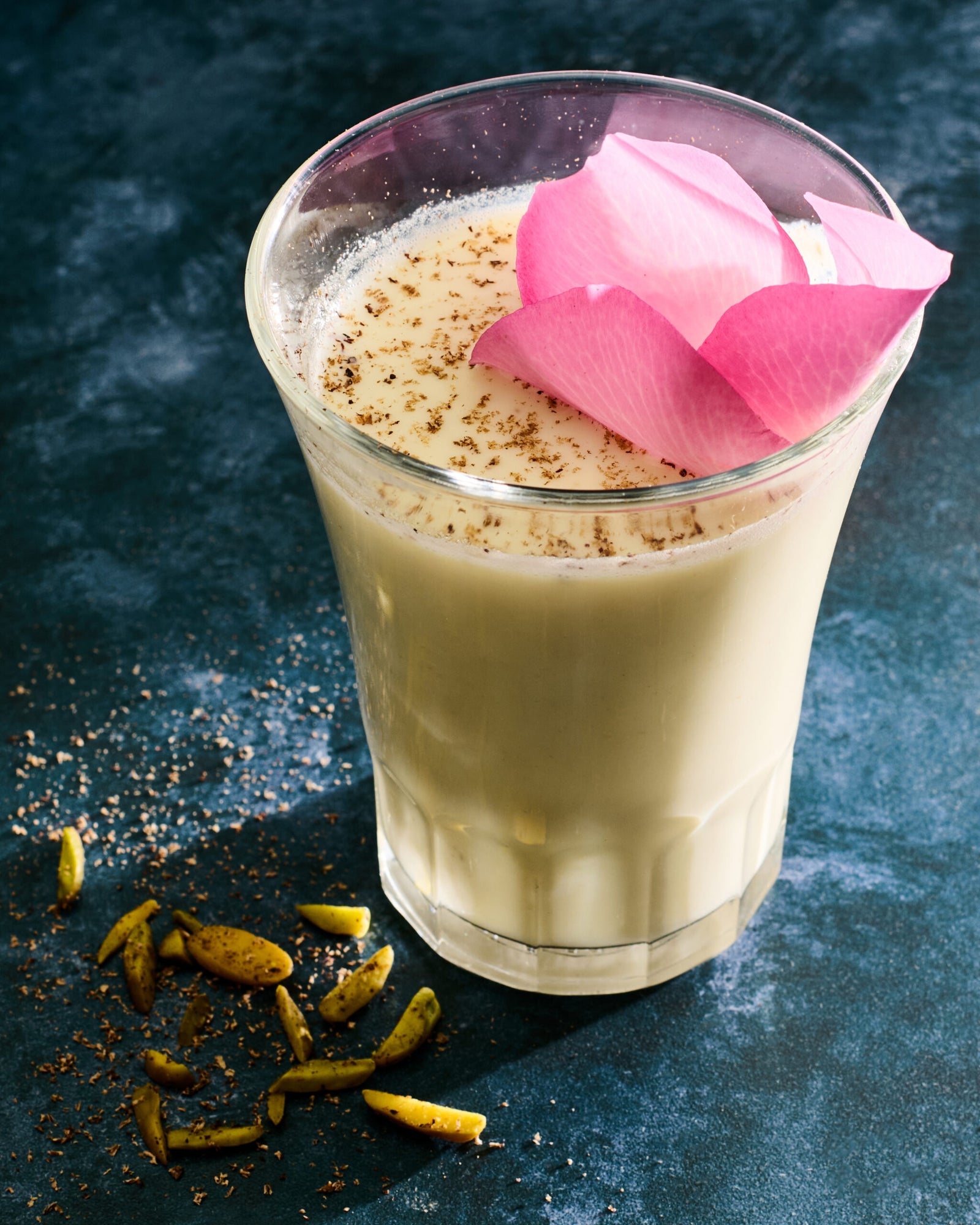 - Подача. В охлажденную молочную смесь влейте джин и перемешайте. Разлейте тандай по стаканам. Украсьте свеженатертым мускатным орехом и дополнительными лепестками розы.