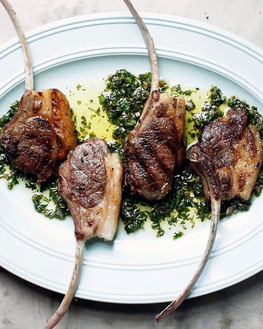 Жареные отбивные из баранины с мятным соусом сальса верде